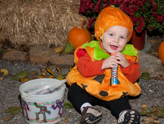 Here is my greatest fall "decoration".........my sweet grandson Ethan (aka Bud). Here he is enjoying a french fry at a local fair :) Hard to believe he celebrates his first birthday later this month! SO precious!